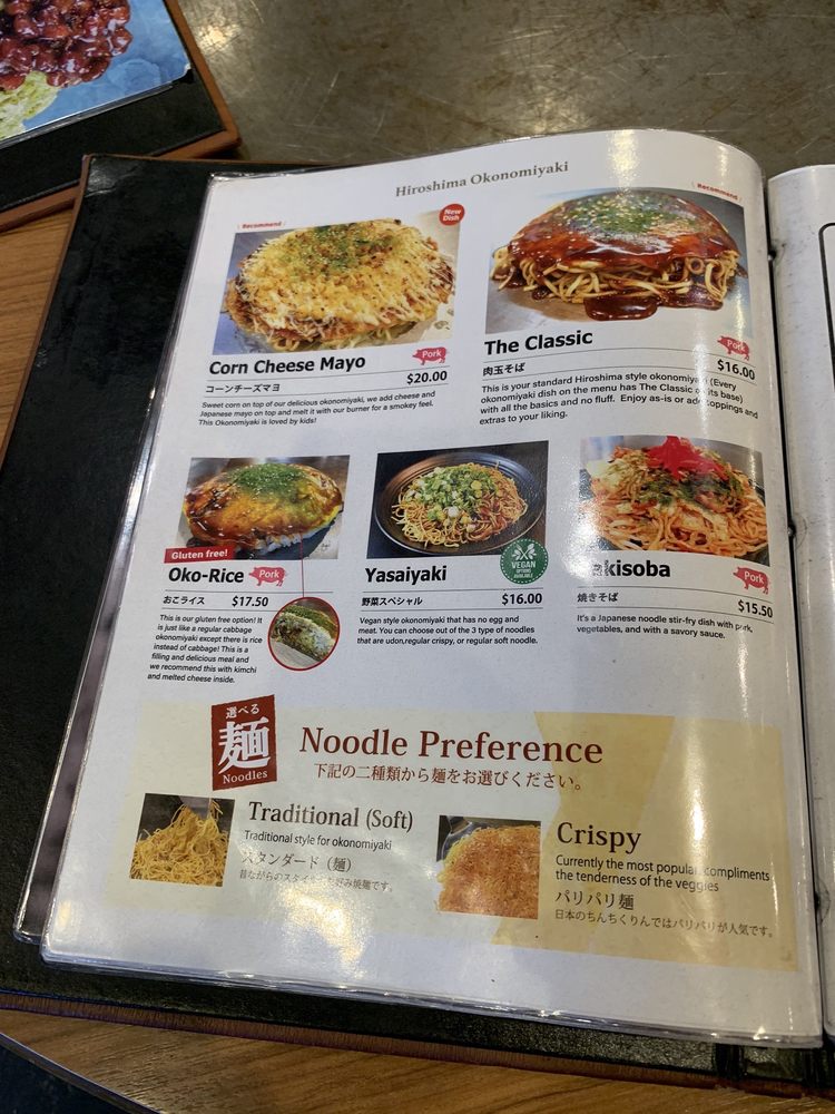 Pork. Keeping it simple and sweet! This is your basic Hiroshima style okonomiyaki (every okonomiyaki dish on the menu has the classic as its base) with all the basics and no fluff. Enjoy as-is or add toppings and extras to your liking.